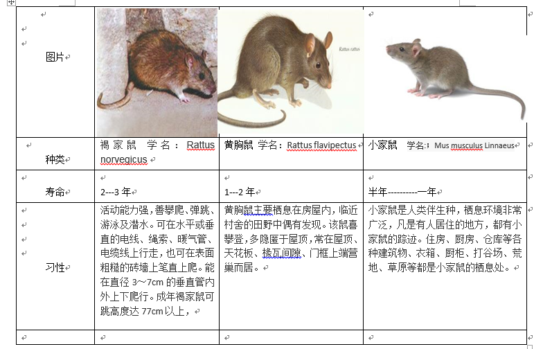 · 消殺階段:主要進(jìn)行室內(nèi)、外重點(diǎn)區(qū)域投放安全的滅鼠餌劑,對(duì)不允許使用藥劑的區(qū)域,設(shè)置固定的粘捕設(shè)施,在鼠類活動(dòng)的主要通道上,布放捕鼠設(shè)施,在短期內(nèi)降低鼠類的種群密度,使鼠密度控制在國(guó)家標(biāo)準(zhǔn)范圍內(nèi)。